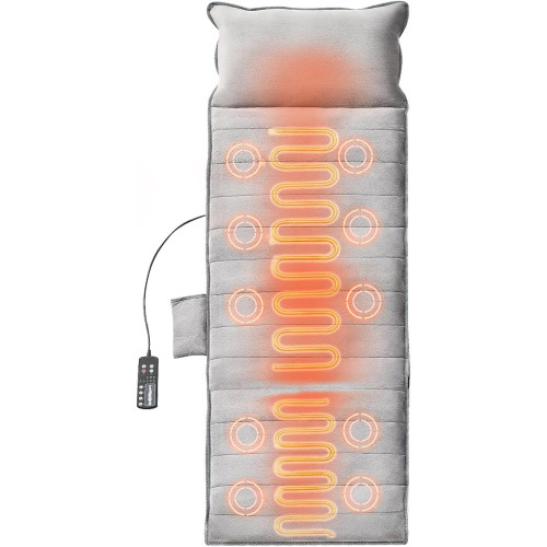 These full-body massage cushion comes with 10 vibration massage motors, covering your entire body to provide a soothing and relaxing massage experience. It targets both superficial and deep layers of your muscles, relieving tension and soothing aches to bring about overall body relaxation. Enjoy soothing heat therapy for 3 key areas (back, hips, legs) to make your full body warm. The gentle warmth promotes blood circulation, alleviating pressure and improving sleep quality for a truly rejuvenating experience. Crafted with short plush and high resilience core, this vibrating massage pad not only looks stylish but also offers exceptional durability. Reinforced hemming enhances longevity, while included storage straps offer convenient organization for long-lasting comfort. Elevate the well-being of your family with this full-body massage mat, perfect for home and office use. An ideal present for birthdays, Mother's Day, Father's Day, Thanksgiving, and any special occasion that calls for the gift of relaxation and rejuvenation.